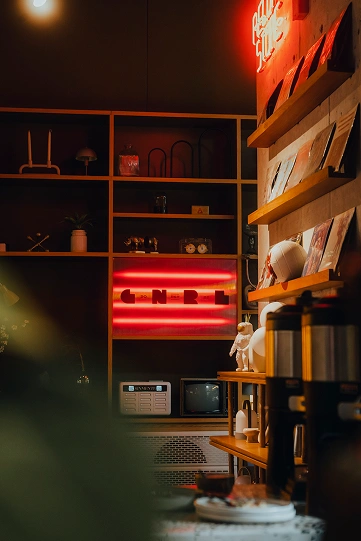 Un café-bar como debe ser: buen café, arte que inspira y música que siempre acompaña el mood perfecto. Aquí no hay espacios, we have experiences, por eso, también contamos con venta de vinilos, cafés, métodos y merch.